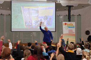 Lohmis kunterbunte Entdeckertour war heute bei uns in der Bibliothek! Autor Herr Lohmer kam gleich mit doppelter Energie: Zwei Klassen durften bei seiner interaktiven Lesung mitmachen und spannende Experimente aus seinem Buch „Technik einfach erklärt“ selbst ausprobieren!
